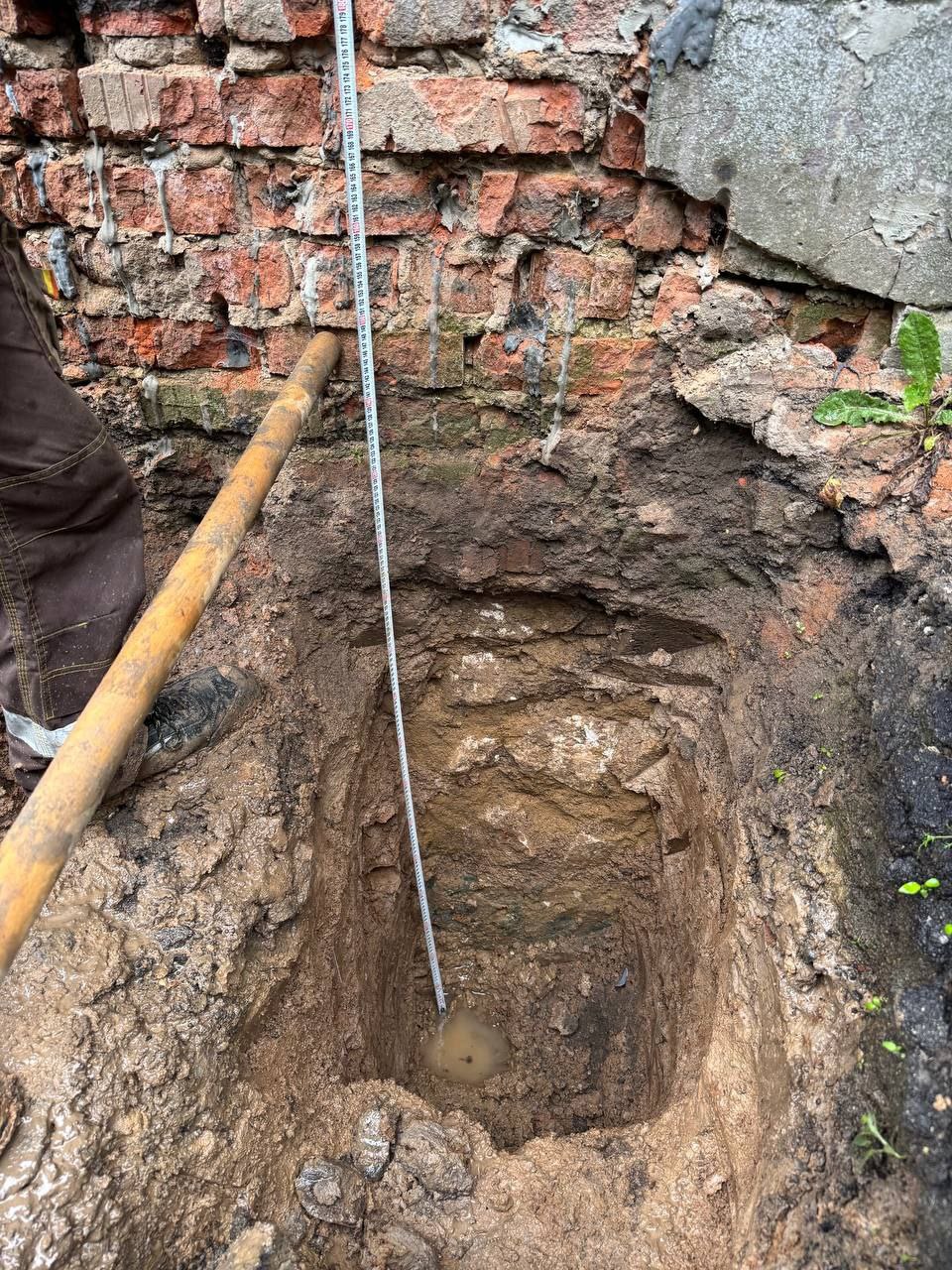 Цель откопки геологических шурфов — обследование фундаментов и грунтов основания.