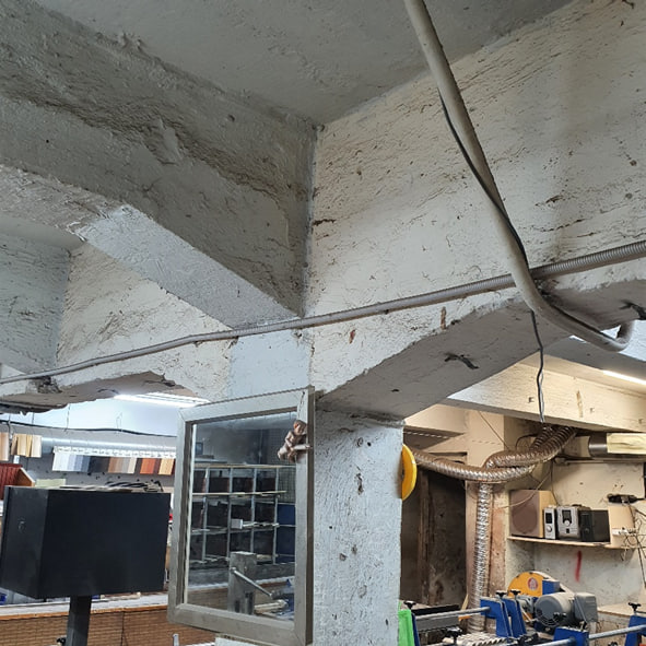 3. Покрытие сборное из железобетонных плит, уложенных на железобетонные балки и кирпичные стены. Техническое состояние покрытия по результатам обследования и в соответствии с ГОСТ 31937-2011 оценивается как работоспособное.